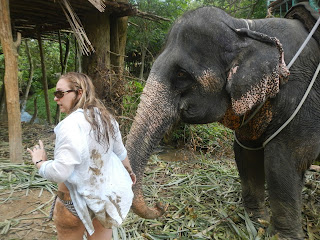 After a hour or so of swimming we returned to the bike and Bec decided to have a go at feeding the elephants which are used to trekking near the carpark we left the bike in. After feeding several elephants pineapples, one promptly decided to push Bec with its trunk (i think because she wouldn't give it more food), and of course this ended with Bec in the mud quite to the amusement of the locals.